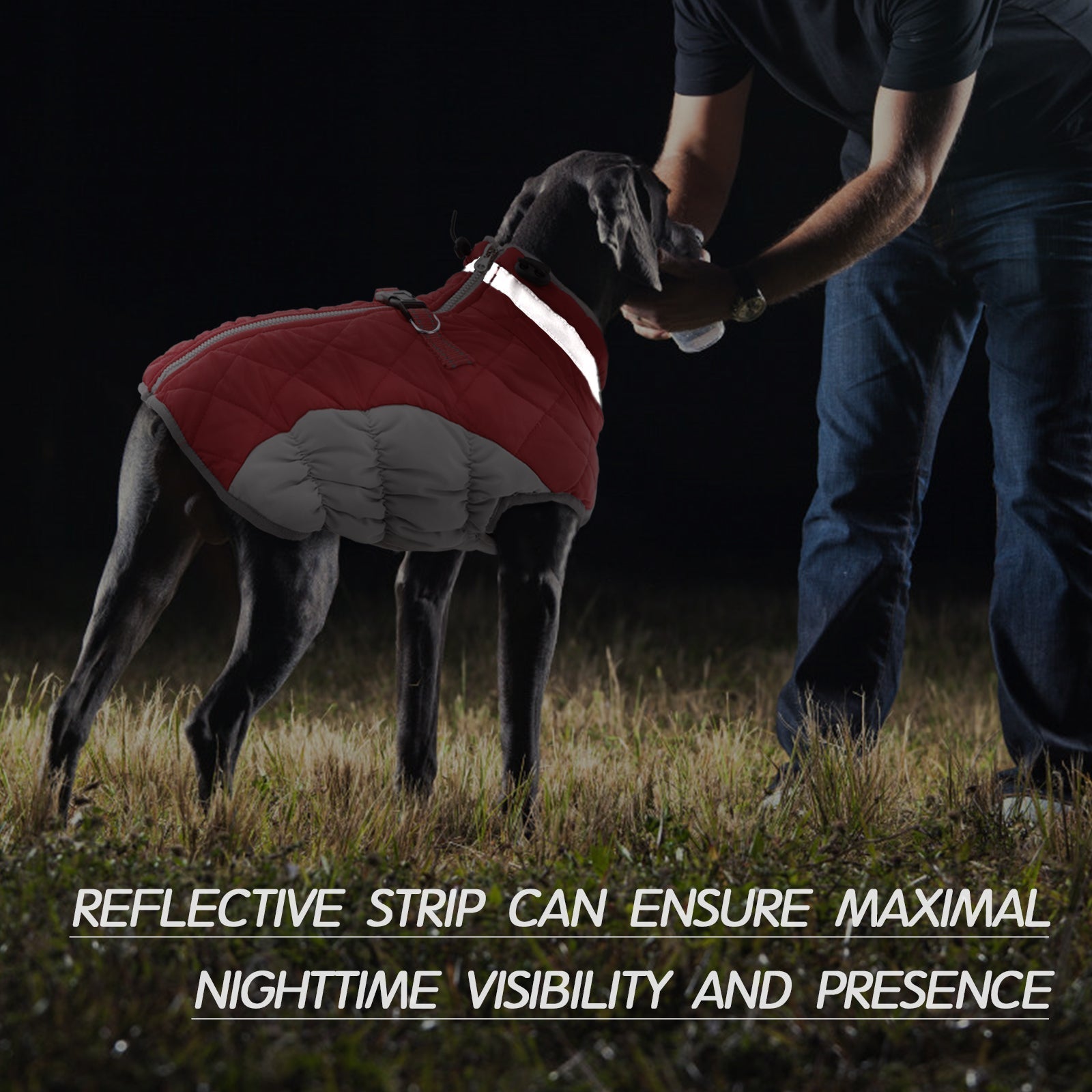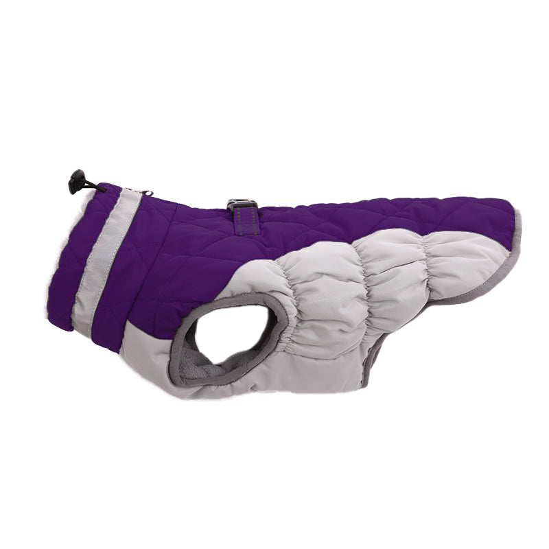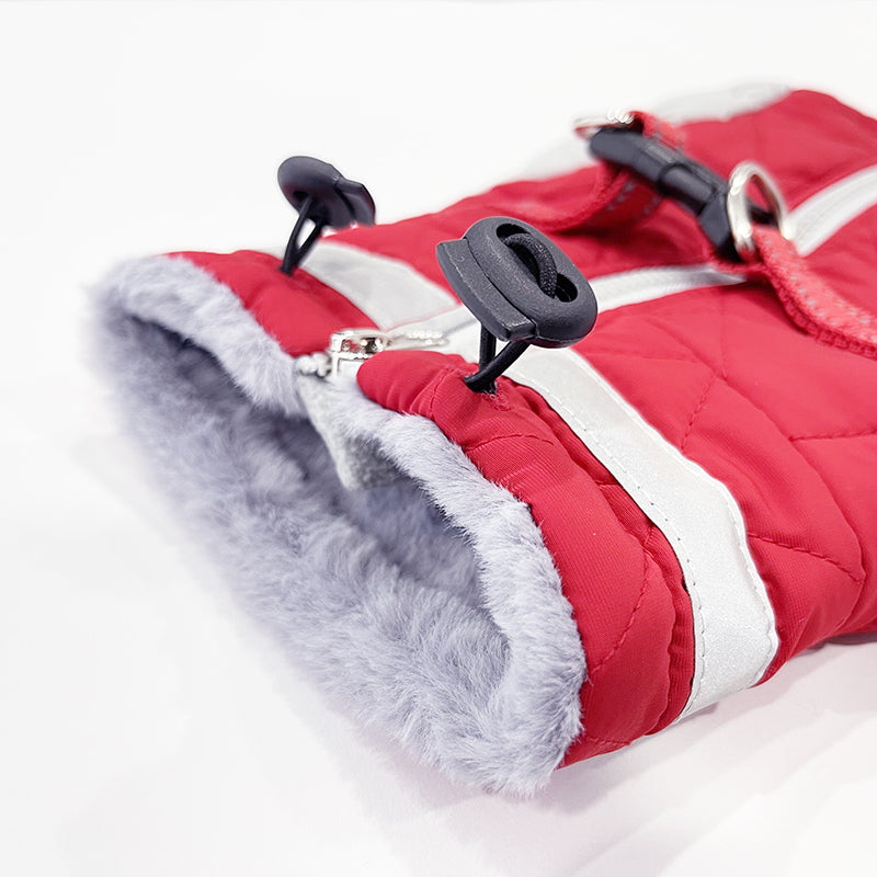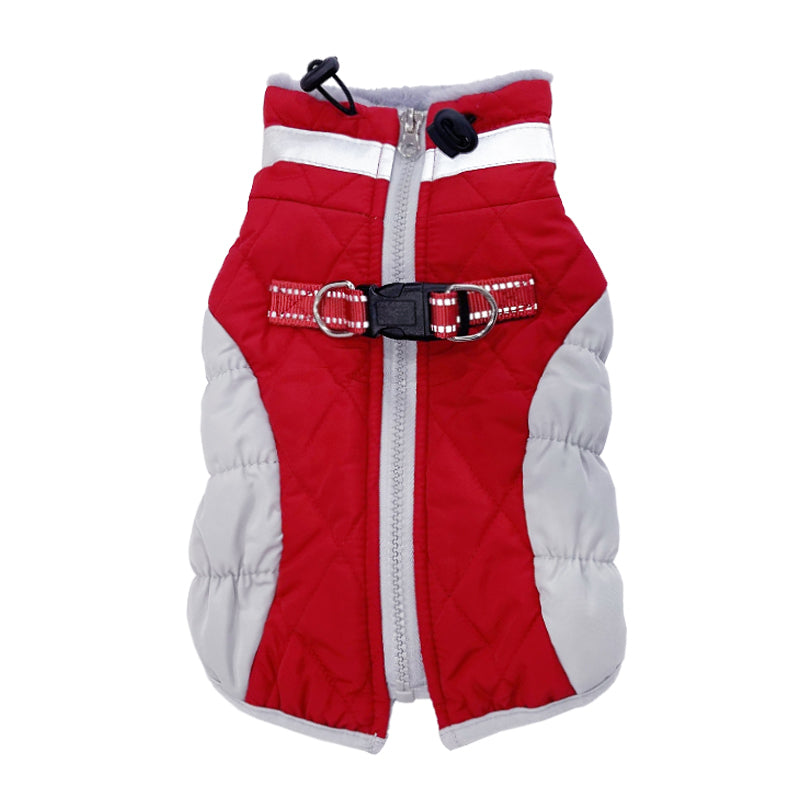 - The dog outer jacket is made of water-repellent cross-grain fabric.