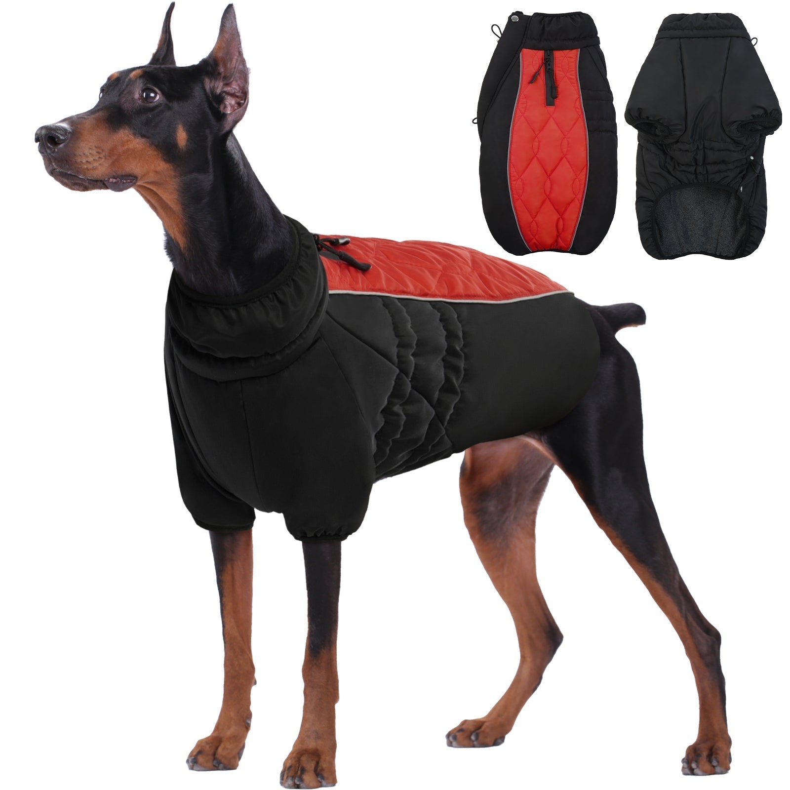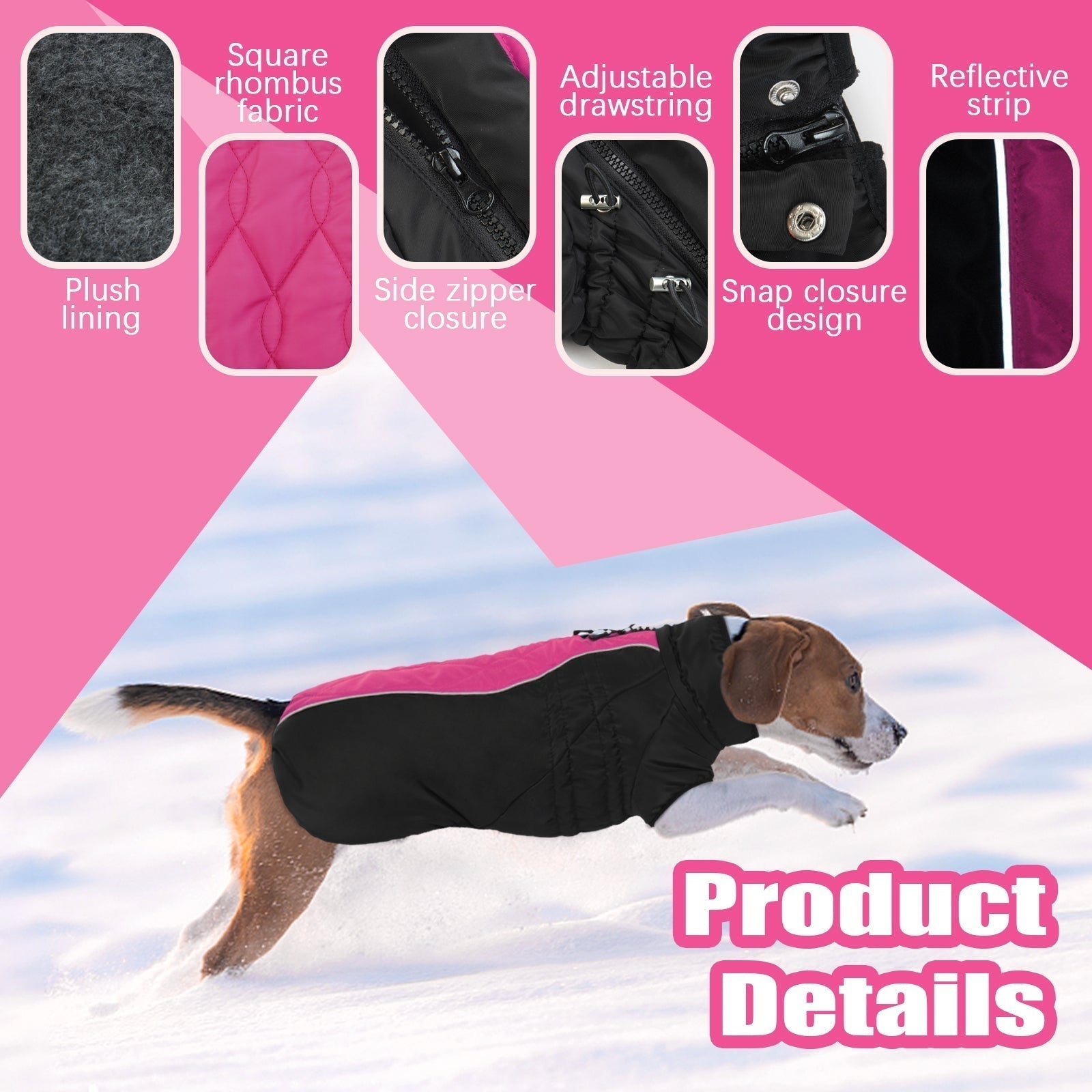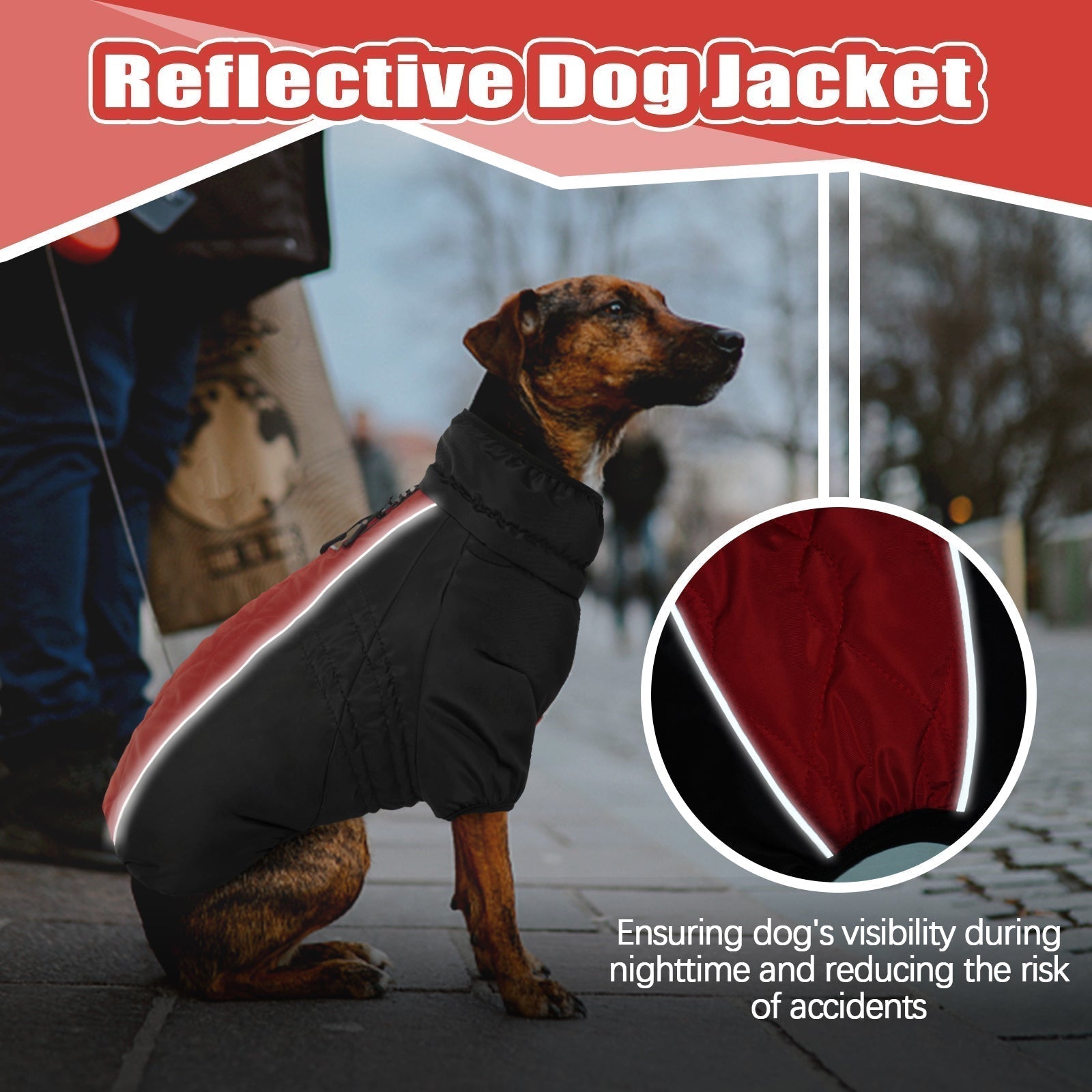 Thickened. windproof. durable. and breathable: The dog jacket is made of high-quality polyester fiber filling. ensuring that your pet stays safe and warm in cold weather. The inner layer material is waterproof. keeping your puppy dry.