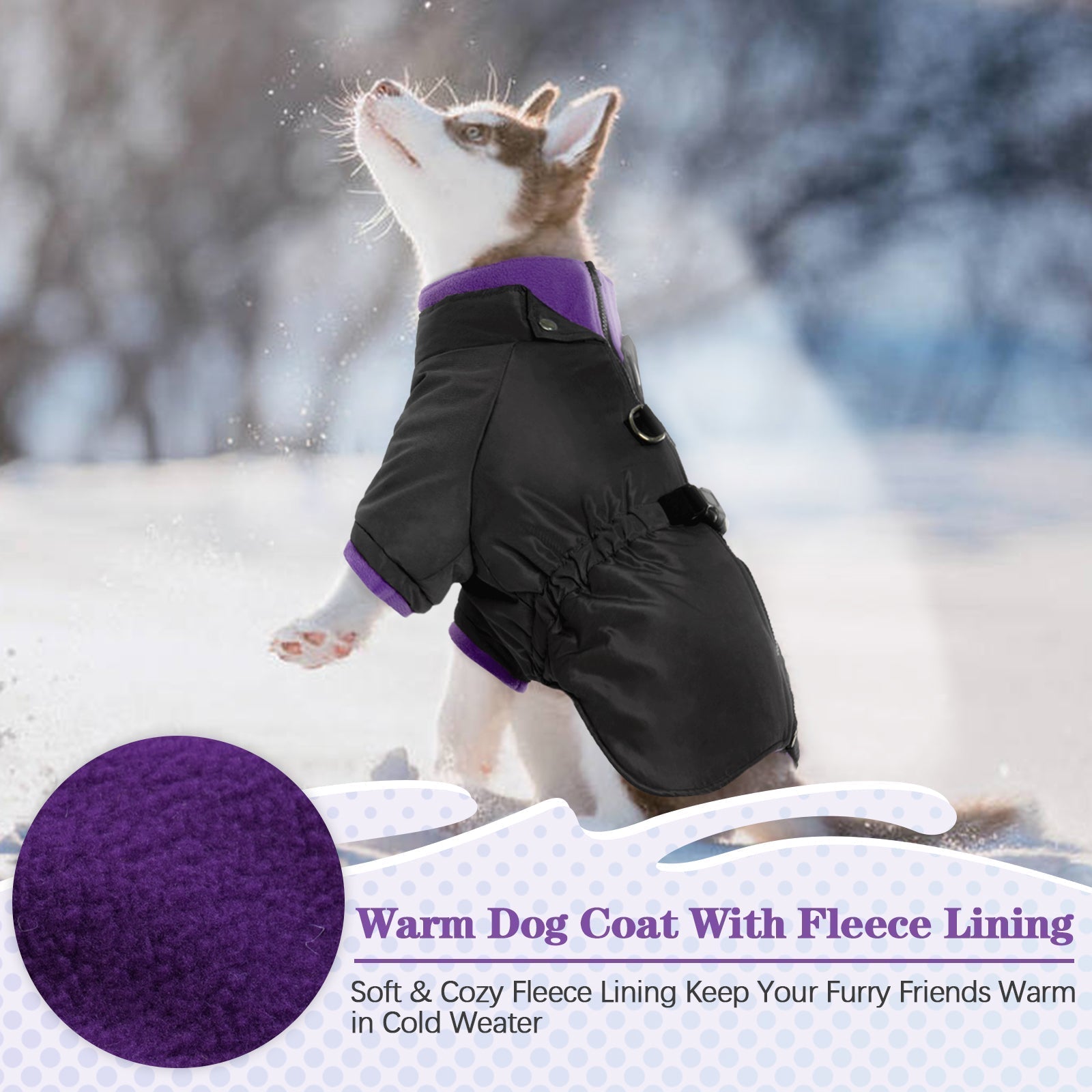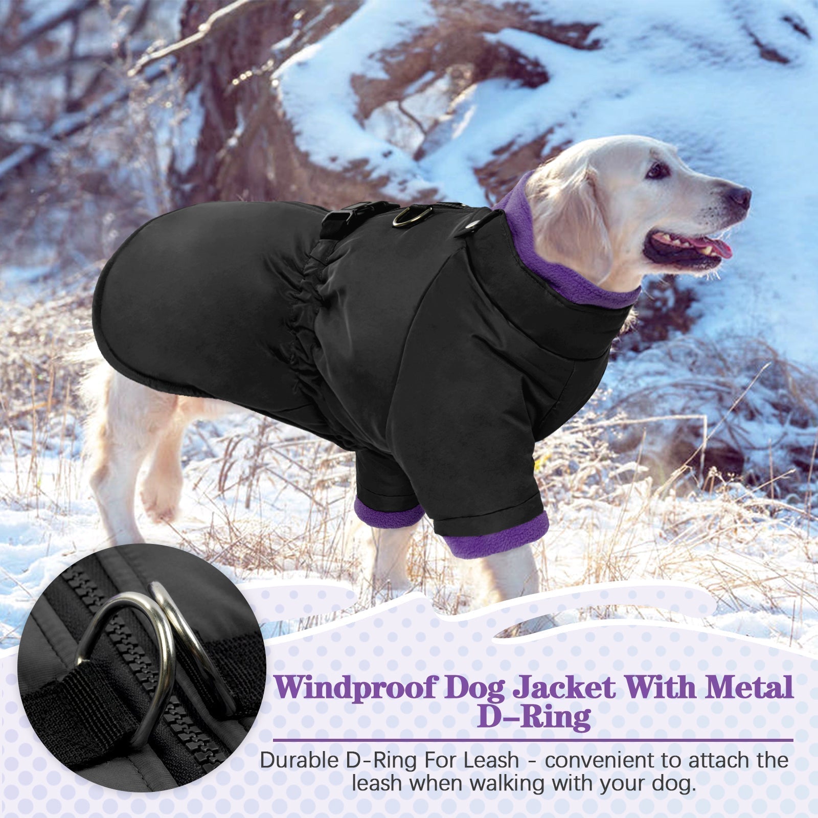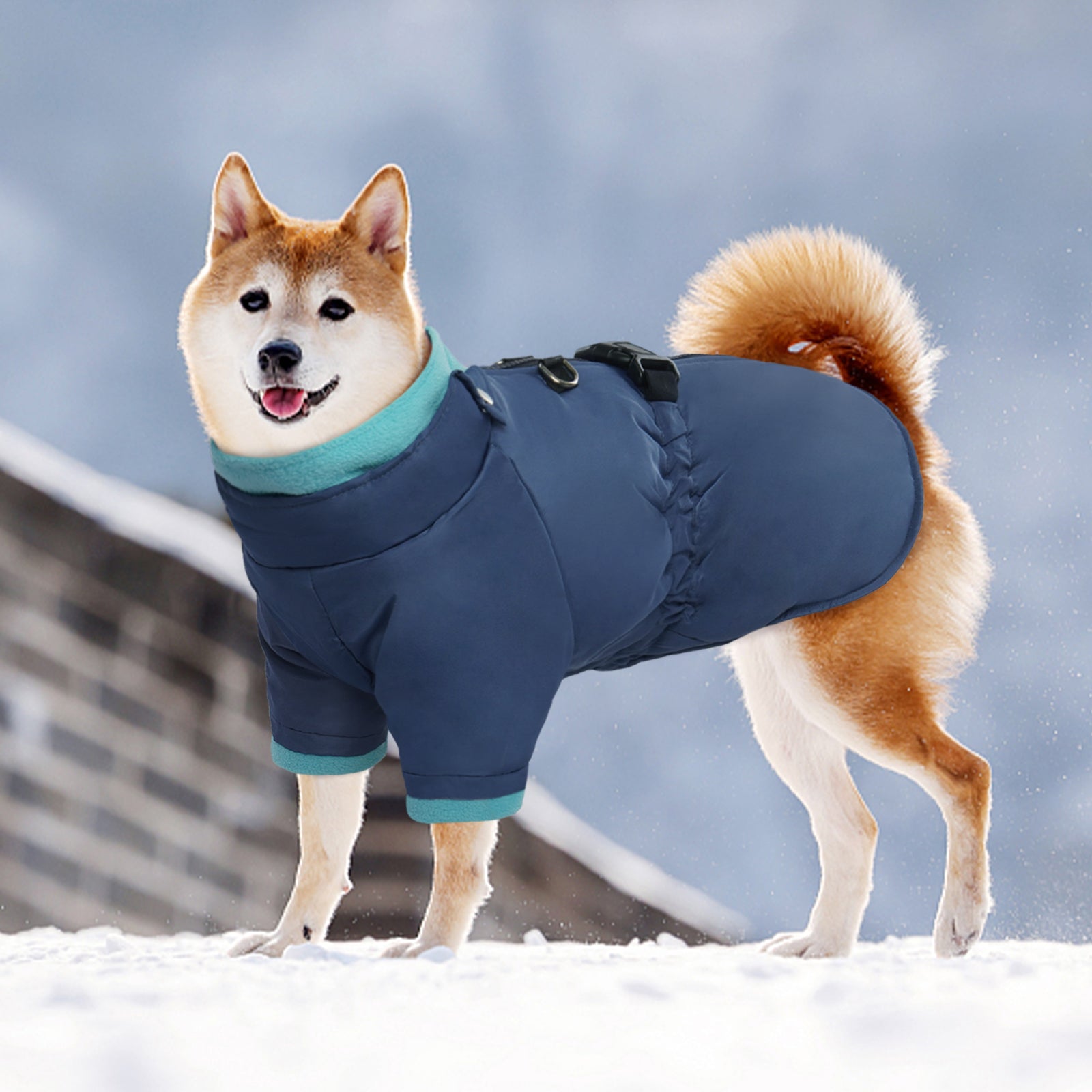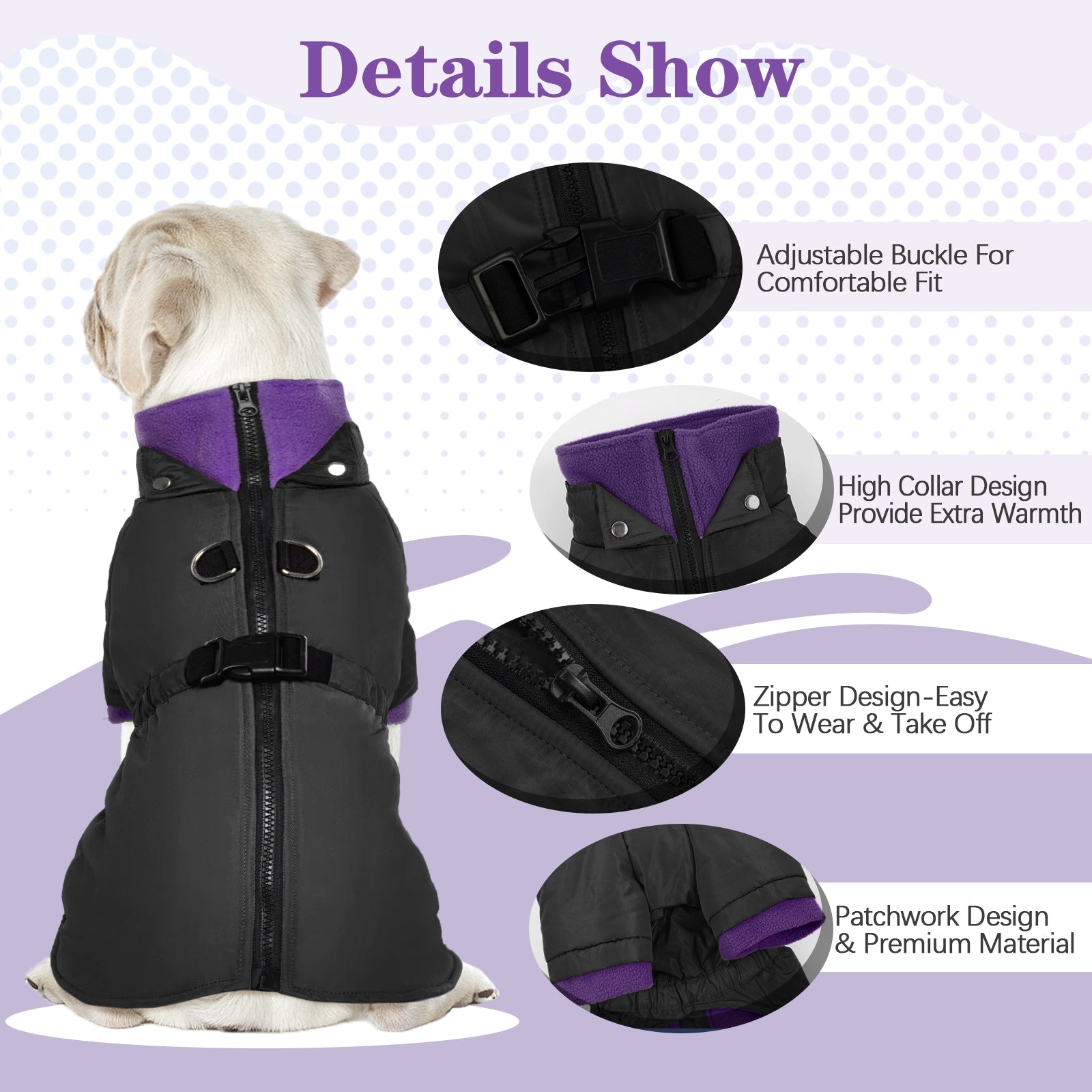 Thick and warm dog coat: The dog coat is made of 100% polyester fiber outer layer. ensuring wind and water resistance. The inner lining of the dog winter jacket is made of soft fabric and filled with thick cotton padding. providing exceptional warmth and softness.